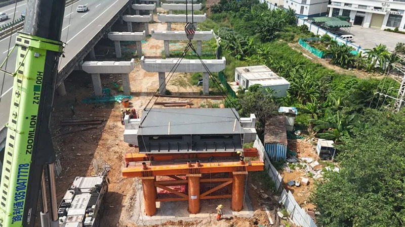 首片钢箱梁精准架设到支座
