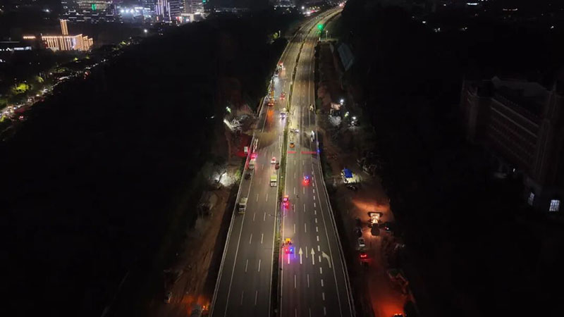 2025年10月16日22时30分许,莞深高速寮步枢纽互通-大有园互通区间主线交通恢复畅通。仅历时10个半小时,莞深高速改扩建首次跨主线“两桥同步拆除”及多专业集中交叉作业任务圆满完成。这一关键节点的顺利突破,为后续工程推进奠定了坚实基础,展现了项目团队卓越的工程建设施工织协调能力。同时,两桥同步拆除是莞深改扩建工程从“破”到“立”的标志性转折点,快速推进了改扩建工程进展,使之迈入突破“旧瓶颈”、实现“新畅通”的新阶段。