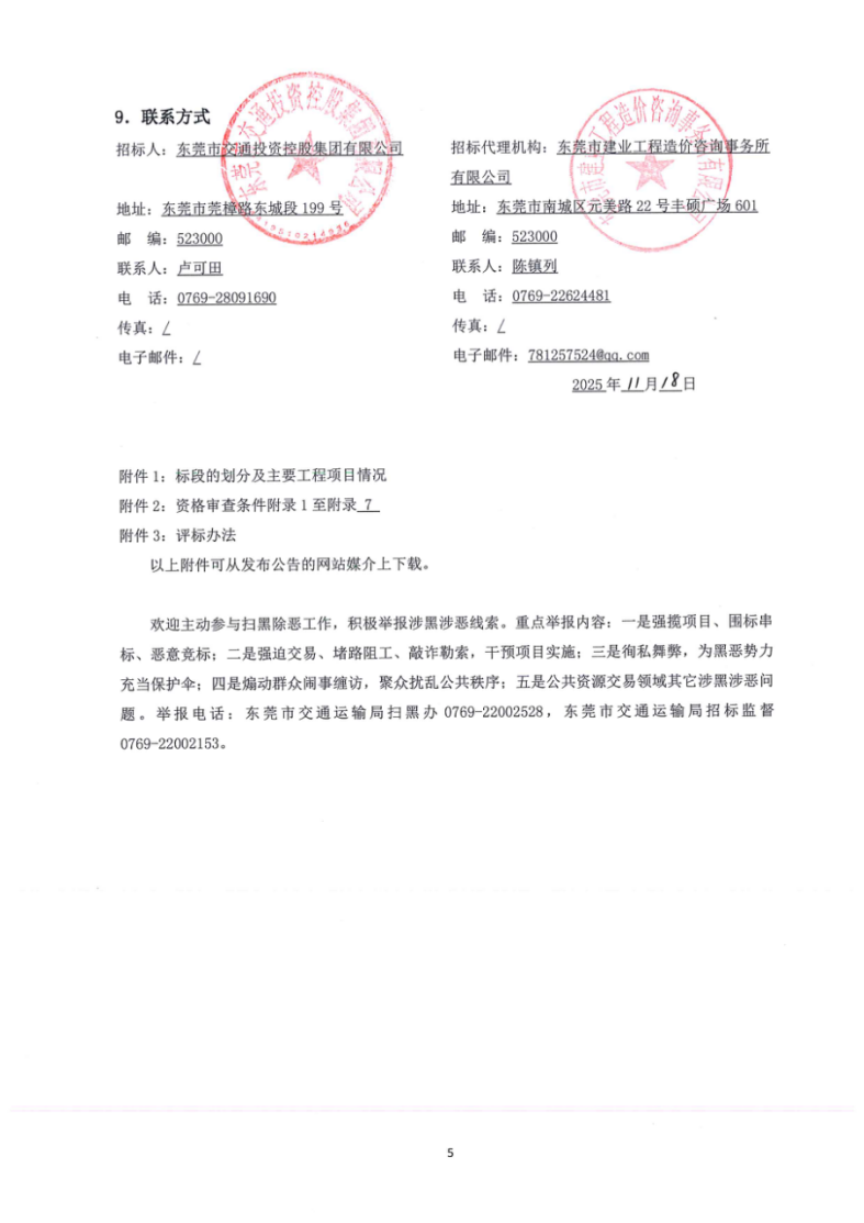 8.2 其他: 招标人监督部门:东莞市路桥投资建设有限公司党群监察部
